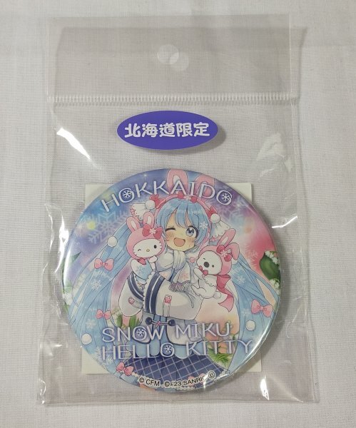 > ♪◆初音ミク×サンリオ◆雪ミク×ハローキティ 北海道限定 スズラン 缶バッジ 01