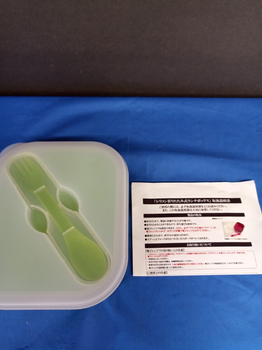- シリコン 折りたたみ式ランチボックス グリーン(スポーク付き) 電子レンジ使用可 保存容器にも