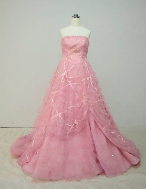 - 貸衣装処分品 0302 カラードレス 7号 ピンク【中古】