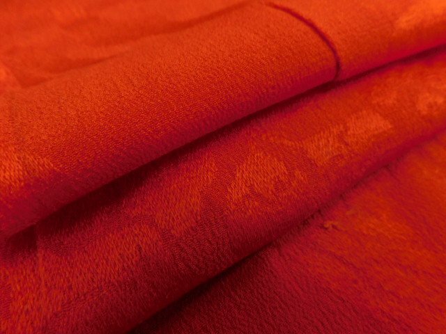 > 〔楽布〕P28739 紋縮緬 赤無地 ハギレ 半巾 36cm×17cm 古布古裂 大正ロマン k
