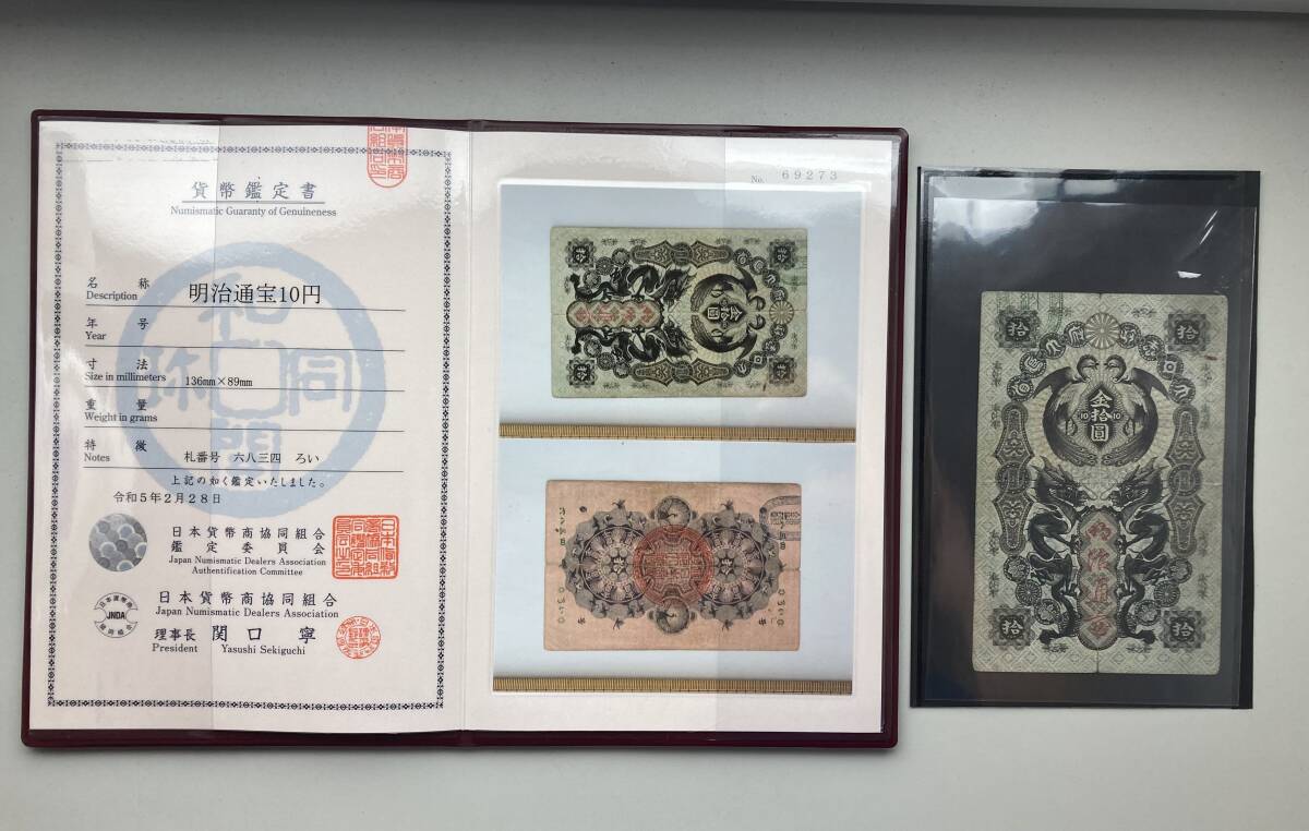 - 【注目/珍品/レア/希少/貴重】明治通宝 10円札 日本貨幣商協同組合 鑑定書付き