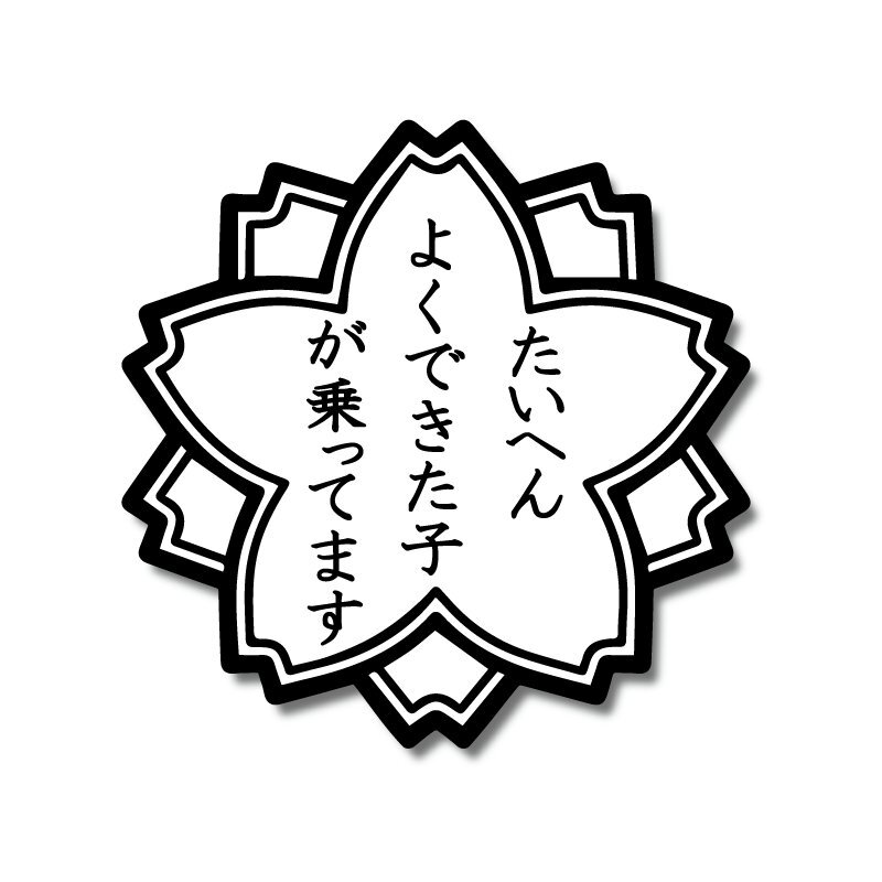 - (反射) 面白ステッカー たいへんよくできた子が乗っています 10cm ブラック