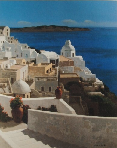 - 大森祥吾、「サントリーニ」、希少画集・額装画、日本製・新品額縁にて額装致します、状態良好、日本人画家