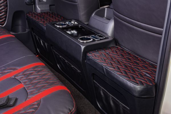 > LANBO 200系ハイエース ワイド セカンドテーブル キャビネット ドリンクホルダー レッドステッチ LUXE-SC-H200W-RE