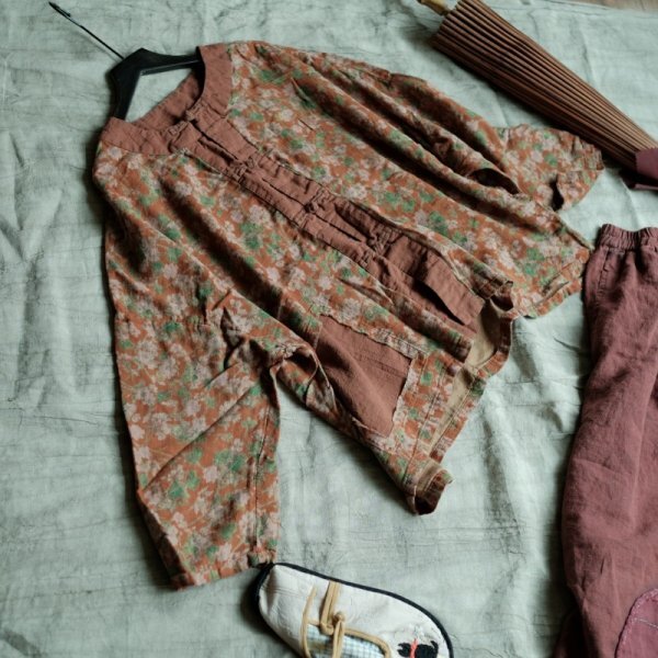 - lgn 2038-2 カーディガン チュニック アンティーク風 洋服ミックス ロマンファッション ポップ 楽ちん 綿100%コットン ダブルガーゼ 花柄