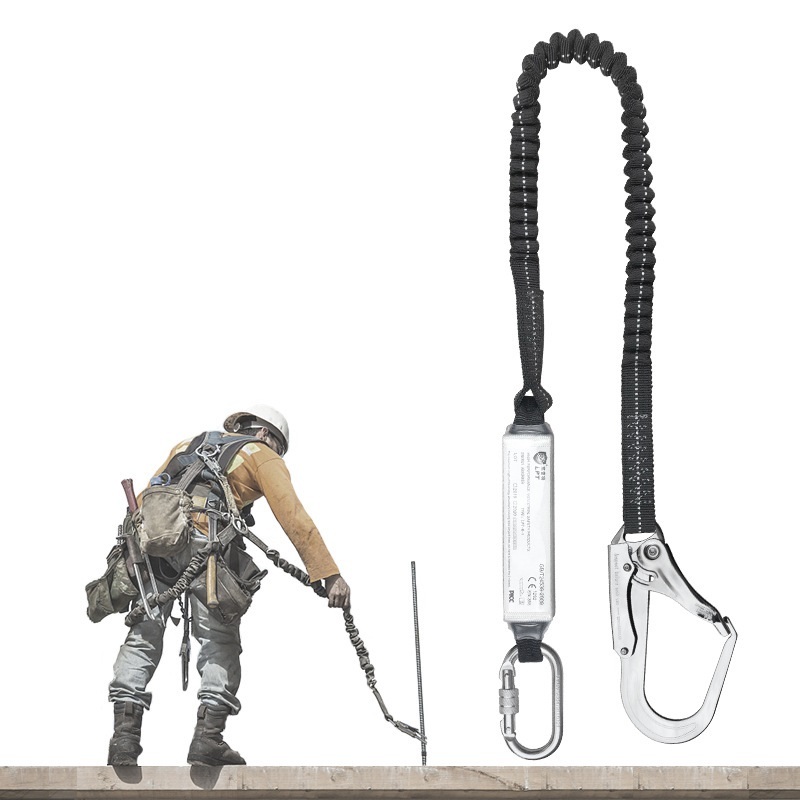 - 1丁掛けタイプ ランヤード ダブルランヤード 伸縮ストラップ式 蛇腹式ロープ フック 80-120cm 一般作業用 フルハーネス型用
