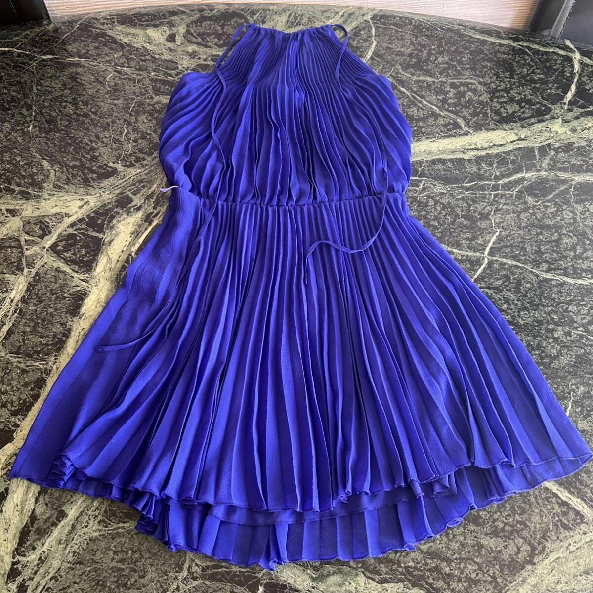 > 【美品】hoss intropia★ホスイントロピア ホルターネックワンピース 36サイズ Sサイズ ノースリーブ ロイヤルブルー 青