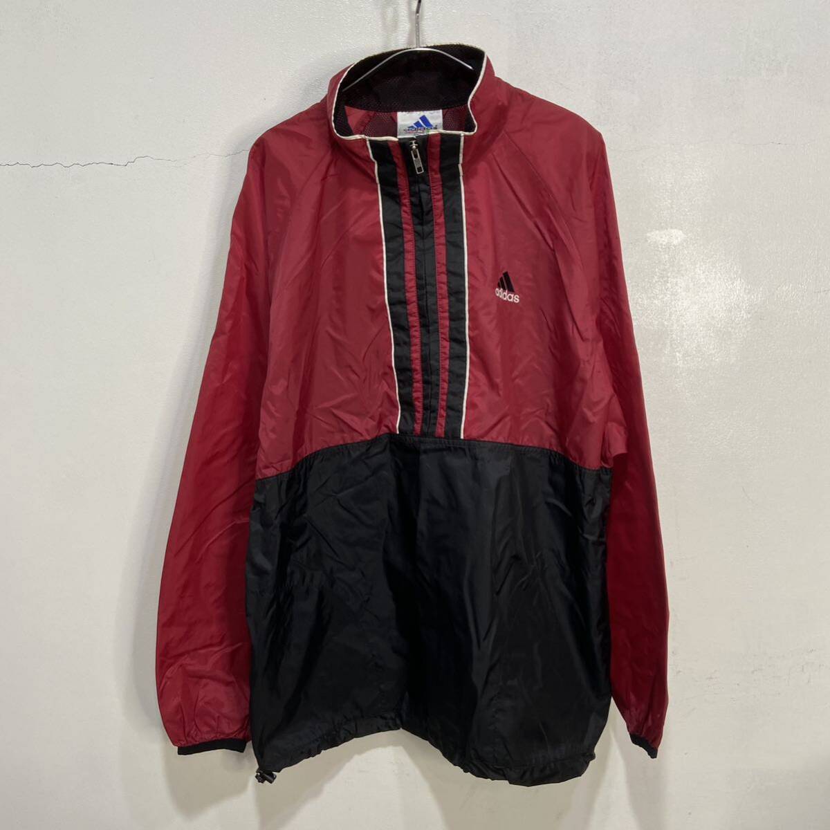 - 送料無料☆ 90s☆adidas☆ハーフジップナイロンプルオーバー☆ボルドー☆ブラック☆M☆