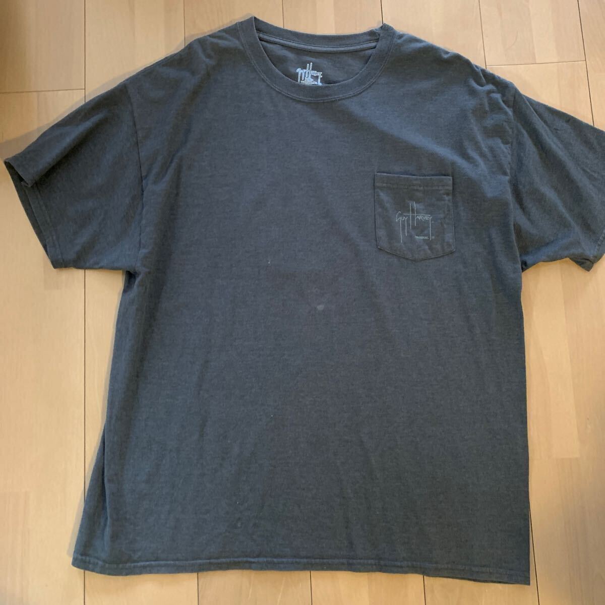 > US古着【Guy Harvey】ガイ バーベイ 両面プリント ポケットTシャツ グレー XL 半袖Tee 2014年 釣り アウトドア フィッシング ガイバーベイ