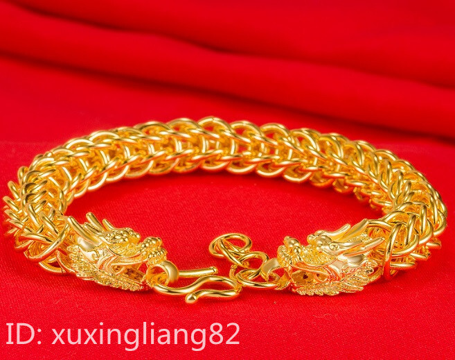 > 豪華 覇気 メンズ ペア龍頭 ブレスレット ゴールド 24KGP ベトナム 砂金 メッキ アクセサリー