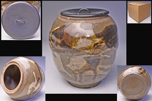 > 時代 ★ 九州系か丹波焼か ★ 産地不明 ★ 流し掛け水指 ★ 合わせ箱 ★ 塗蓋付き ★ 壺 ★ 民芸