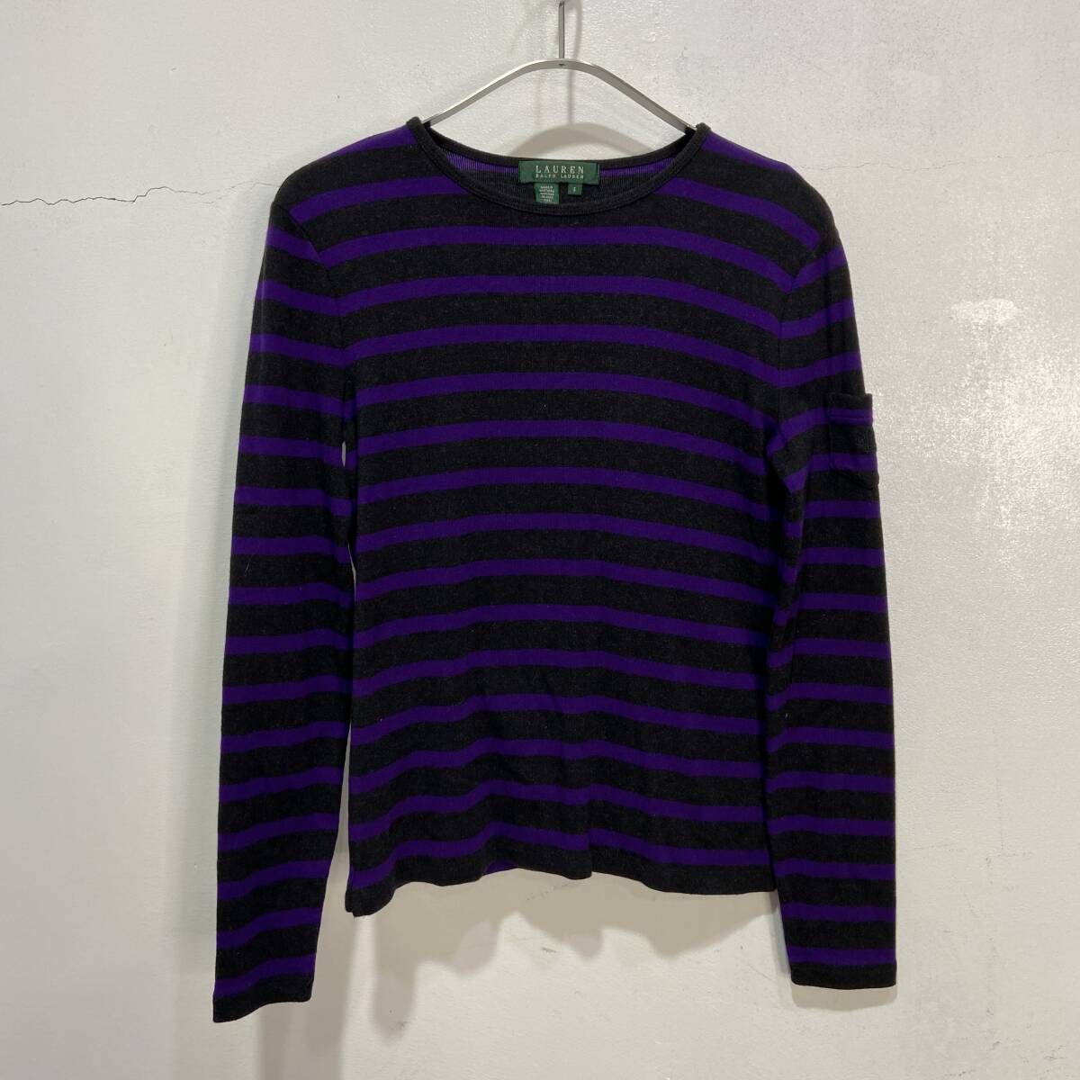 > ☆送料無料☆RalphLauren☆ボーダーシャツ☆長袖カットソー☆リブ編みコットン☆ブラックパープル☆S☆D24M