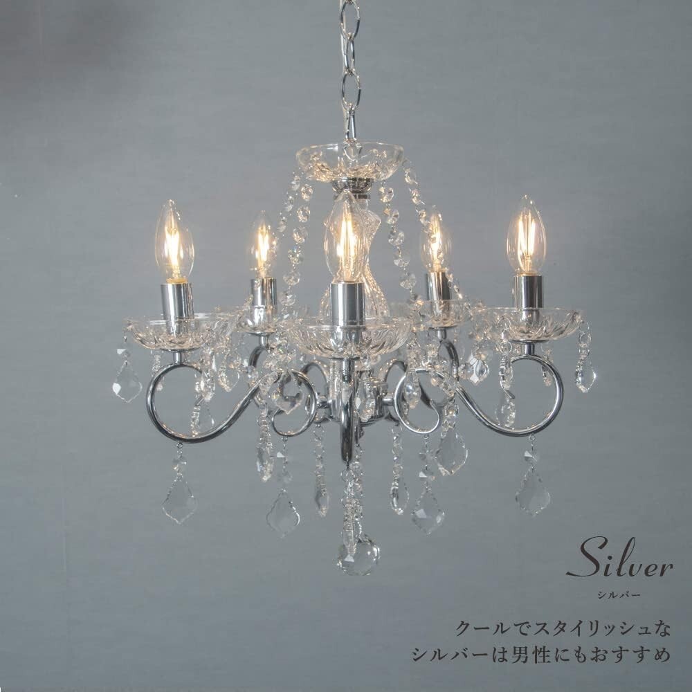 > Vill-age シャンデリア 照明器具 5灯 クリスタルガラス 4畳 6.5畳 アンリ アンティーク LED対応【白熱電球付属、シルバー】