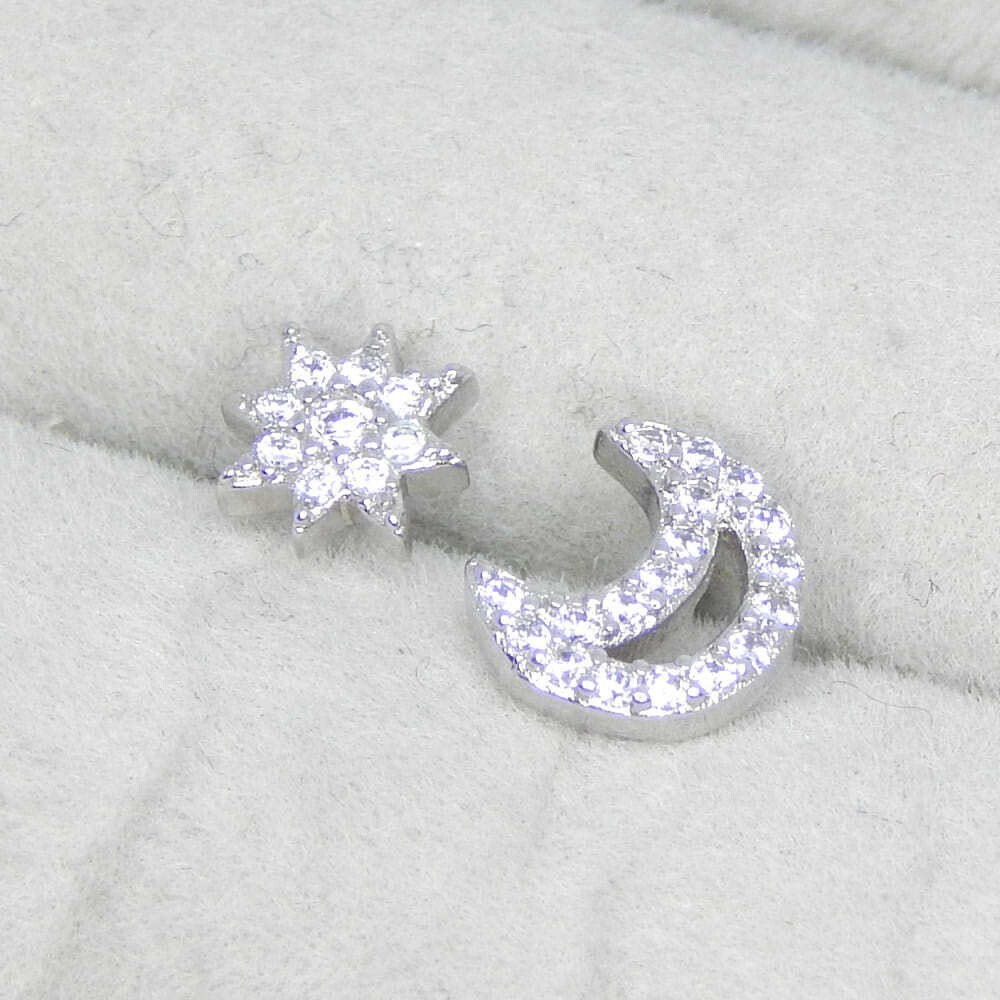 - 再入荷★光芒星 月 CZダイヤモンドピアス シルバー925 ジルコニア 極上の逸品 絢爛 レディース 必見 限定 プラチナ仕上 イヤリング化可