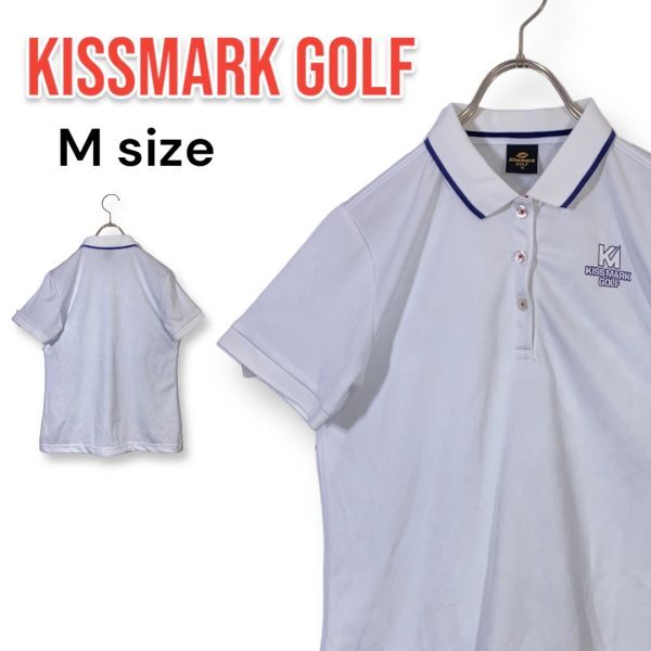 - kiss mark GOLF キスマークゴルフ 半袖ポロシャツ 白 ホワイト 総柄 Mサイズ ゴルフウェア レディース