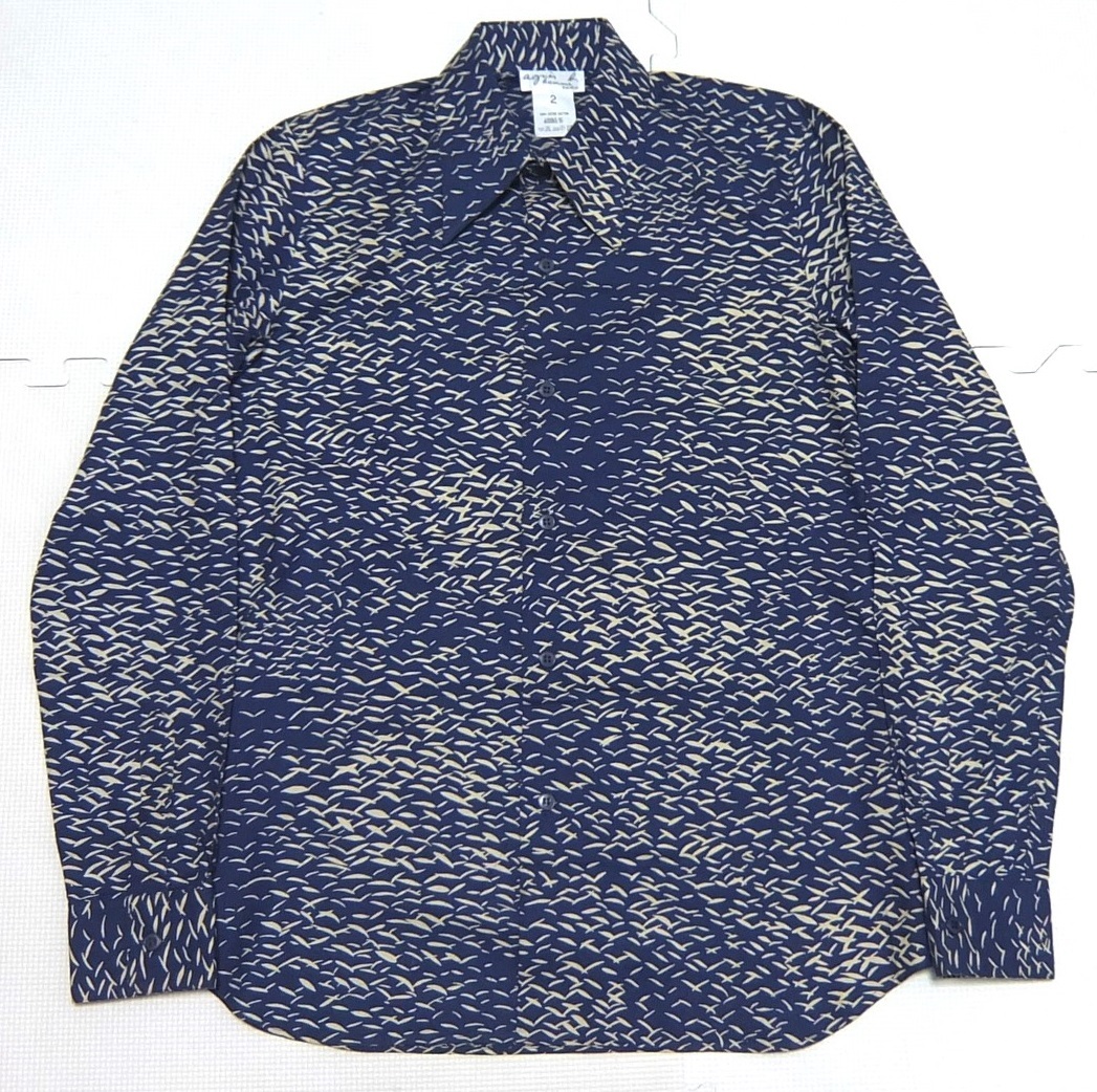 - 日本製 agnes b. アニエスベー 総柄 長袖シャツ 紺 2 美品