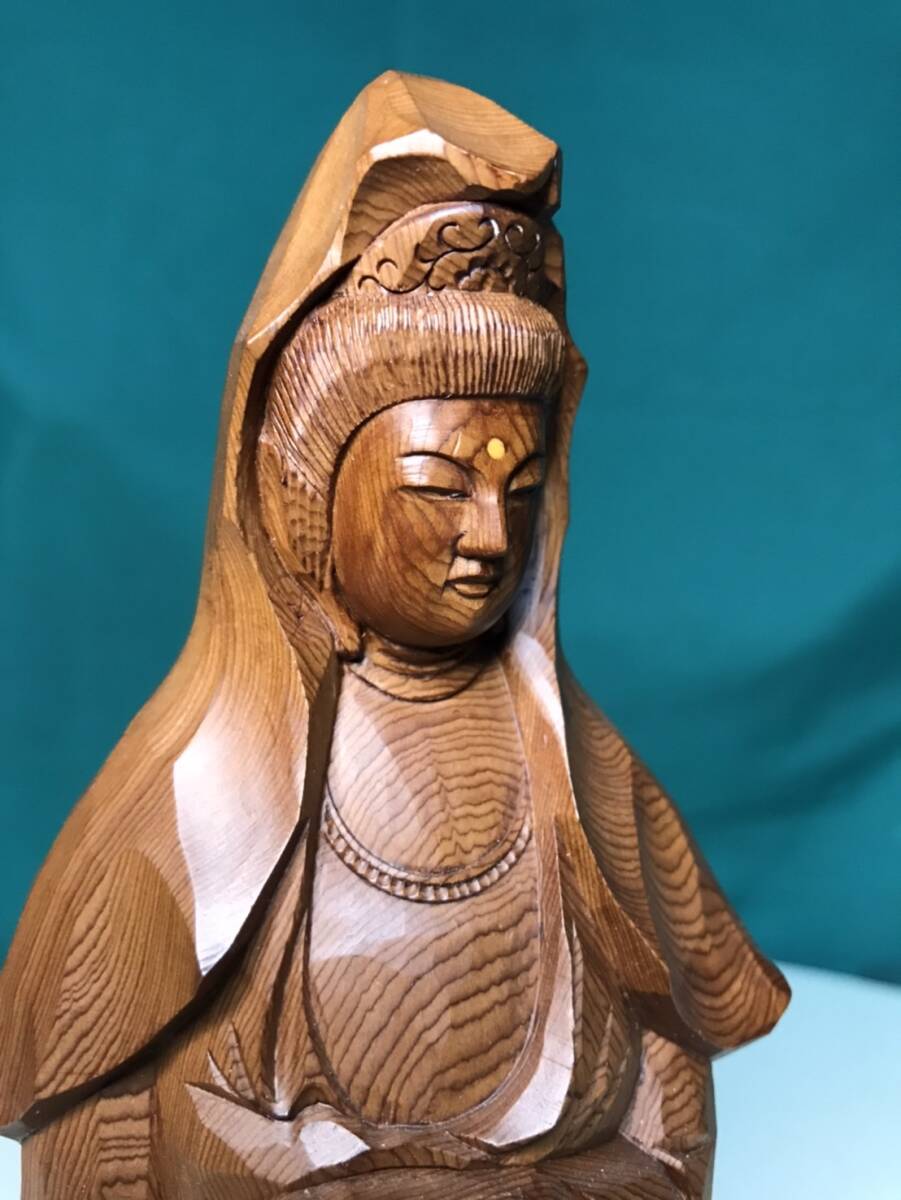 - S 木彫 彫刻 仏像 観音 一木作 無垢 一位 アララギ 在銘 茶道具 書道具 盆栽具 華道具 工芸品 美術品