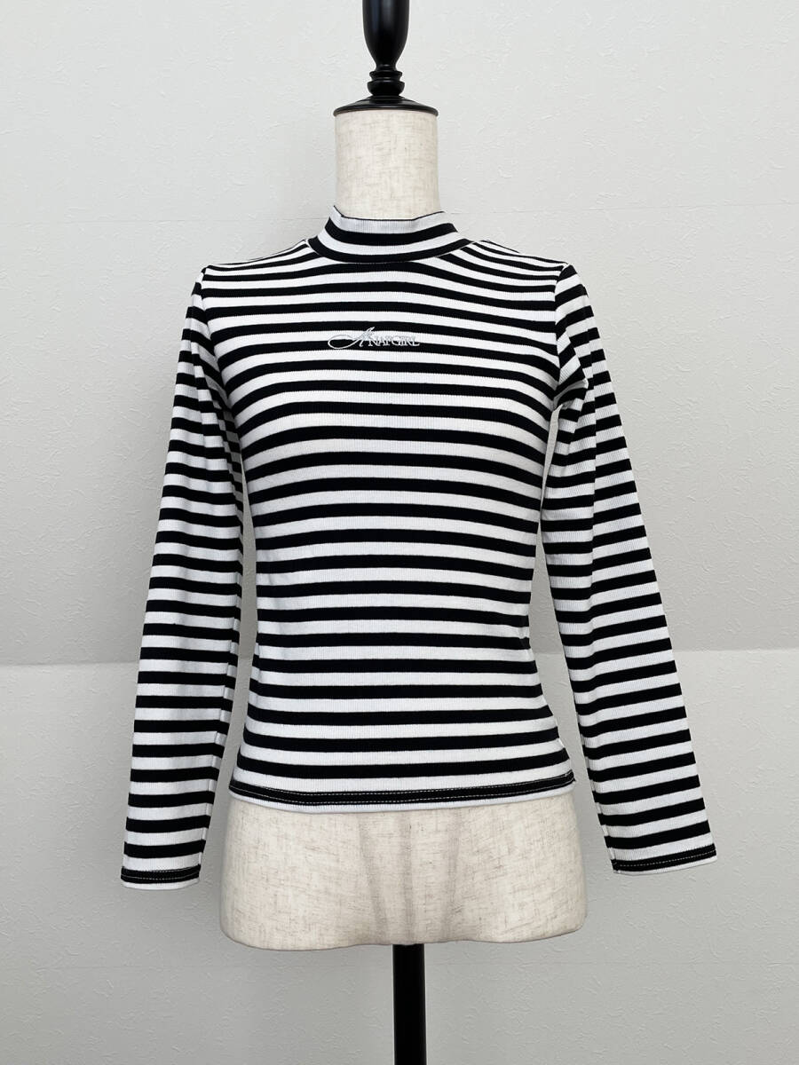 - 未使用 ANAP GiRL 吸湿発熱加工プチハイネックTシャツ ボーダーS(145cm~155cm)ブラックホワイト アナップガール