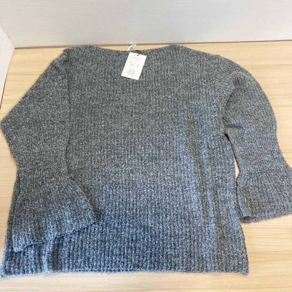 新品 セーター ベルスリーブ 畦編みボートネック プルオーバー レディース フリーサイズ グレー (155)