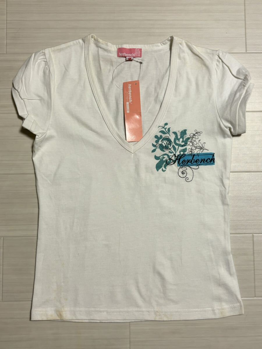 > ■ 未使用 訳あり herbench ベンチ 海外 サーフブランド レディース 半袖 Tシャツ カットソー トップス Sサイズ 36 ホワイト 白 サーファー
