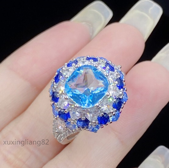 - 綺麗 指輪 レディース ピカピカ サファイア メッキ加工 ジルコン満々 輝く リング アクセサリー 誕生日 ギフト フリーサイズ