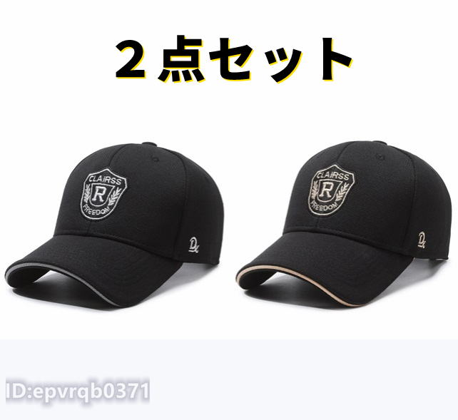 > 「2点セット」野球帽 メンズ キャスケット 刺繍 紳士 帽子 ゴルフ アウトドア フリーサイズ 調節可能 新品未使用 /黒