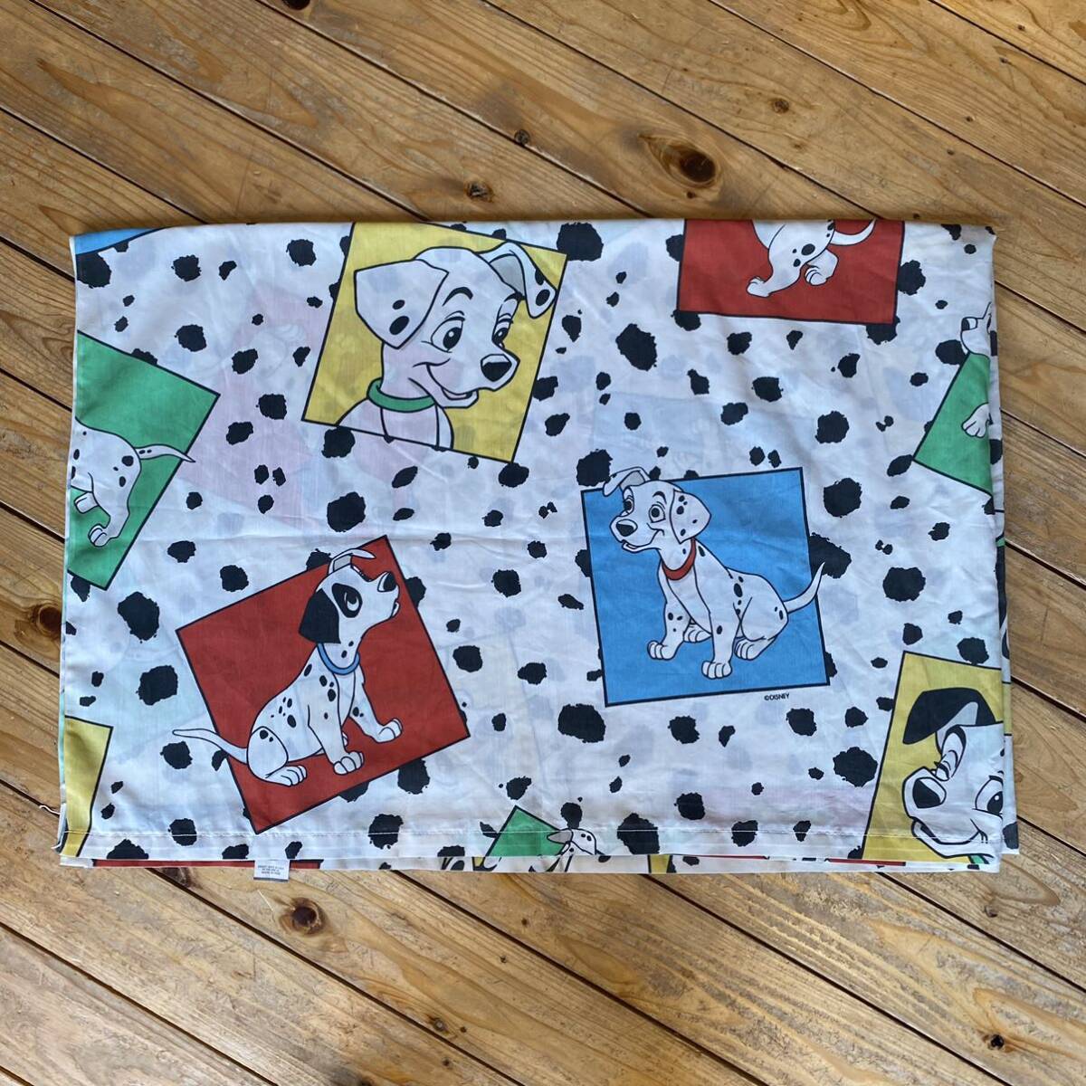 > USAヴィンテージ ベッドシーツ 101匹わんちゃん Disney ディズニー リメイク生地 ドッグ 犬 素材 フラットシーツ アメリカ仕入 総柄 B1918