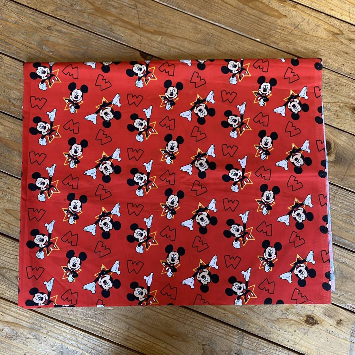 > USAヴィンテージ ミッキーマウス Disney ディズニー リメイク生地 レッド 素材 赤 素材 フラットシーツ アメリカ仕入 総柄 B1926