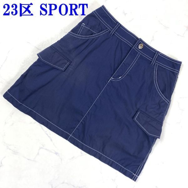- 23区 SPORTホワイトステッチタイトスカートカジュアル スポーツ ストレッチ有 ポケット有 カーゴポケット ネイビー58 C9663