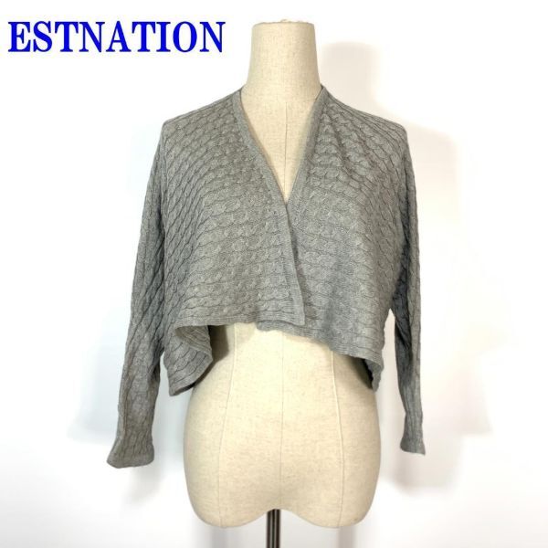 > エストネーションアンゴラ長袖ケーブルニットカーディガングレーESTNATION カジュアル 留め具無 ドロップショルダー M C9711
