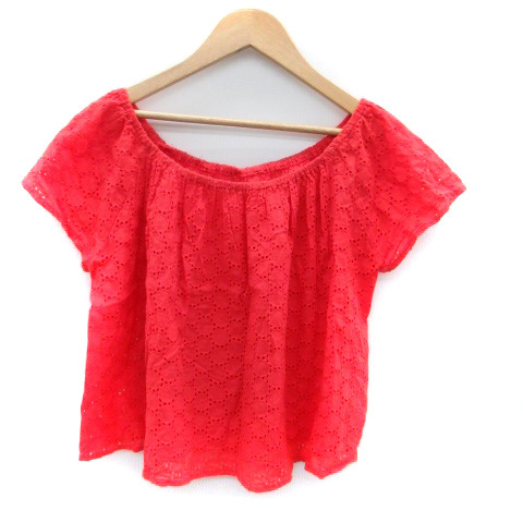 > マウジー moussy ブラウス カットソー ラウンドネック オフショルダー 半袖 アイレットレース 2way F オレンジ /HO29 レディース