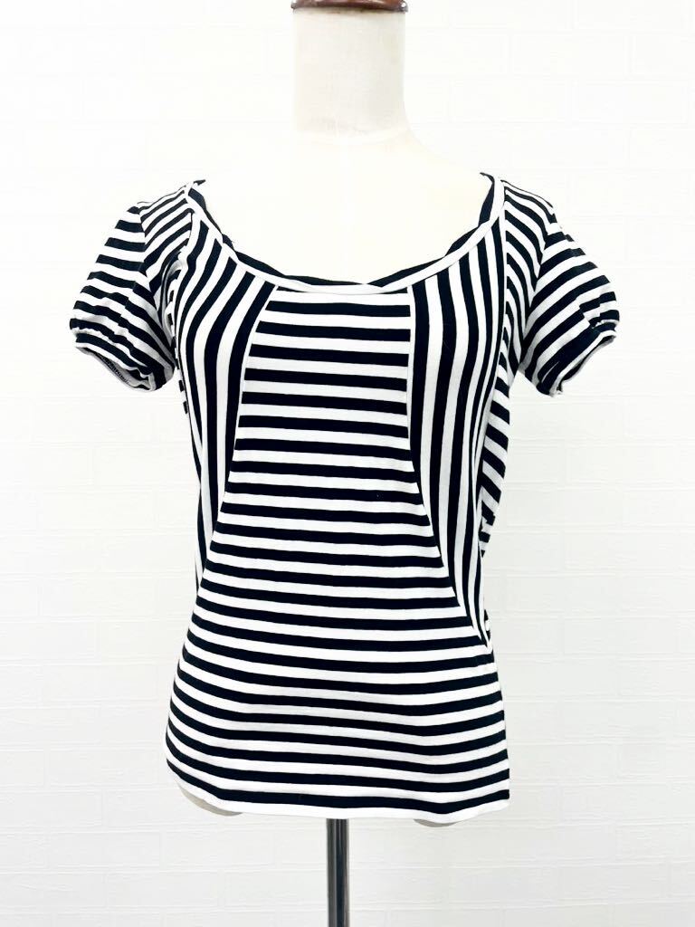 > Max Mara マックスマーラ ウィークエンド ボーダーTシャツ 半袖 カットソー トップス コットン Mサイズ 白 黒 ジャケットインに