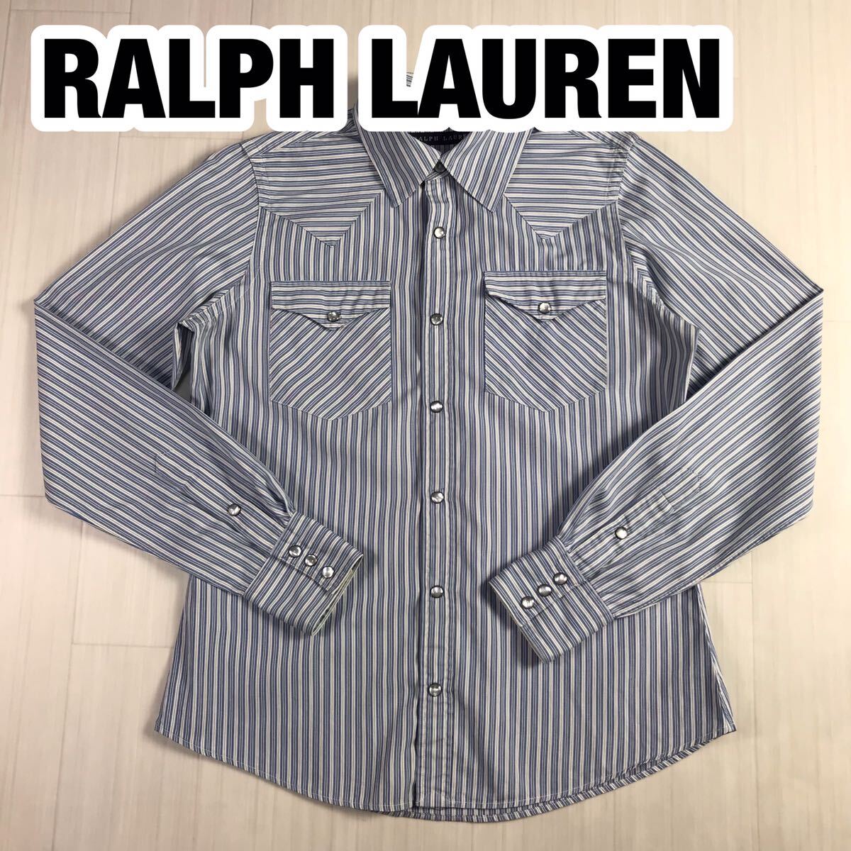- RALPH LAUREN ラルフローレン 長袖シャツ 9 ストライプ ブルー×ホワイト デザインシャツ スナップボタン