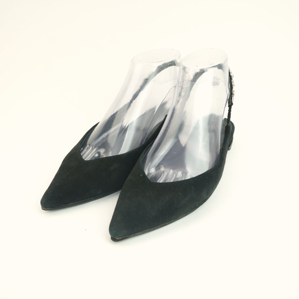 > TSURU By MARIKOOIKAWA ツルバイマリコオイカワ 35 23.0 フラットパンプス バックストラップ ポインテッドトゥ 花 スエード ブラック /OC90