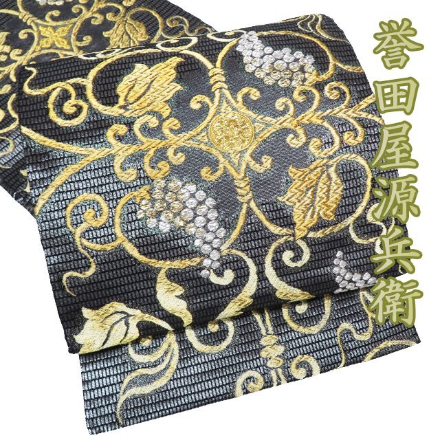 - 特選 袋帯 中古 リサイクル 正絹 フォーマル 仕立て上がり 六通 誉田屋源兵衛 葡萄唐草文 誉文彫金 箔糸 黒色 金銀 きもの北條 A1008-18