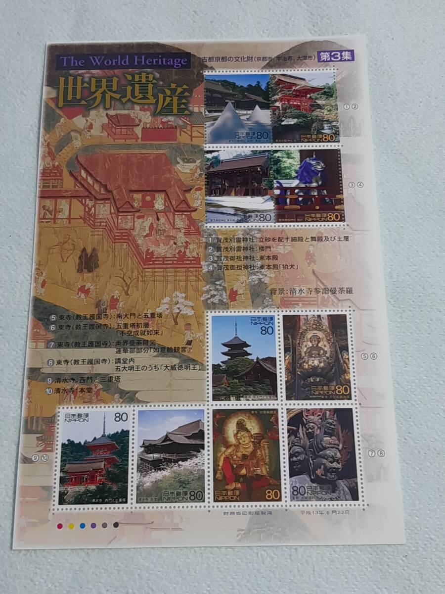 世界遺産シリーズ第3集 古都京都の文化財 H13 切手シート1枚