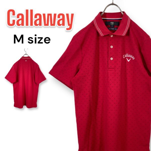 - Callaway キャロウェイ 半袖 ポロシャツ メンズ Mサイズ 赤 マーク 総柄 吸汗速乾 ゴルフウェア