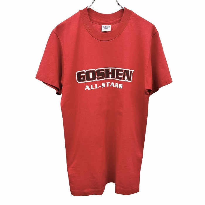 > イーグルユーエスエー EAGLE USA Tシャツ 輸入古着 USA製 アメリカ製 英字 文字 両面プリント 半袖 丸首 綿×ポリ S レッド 赤 レディース