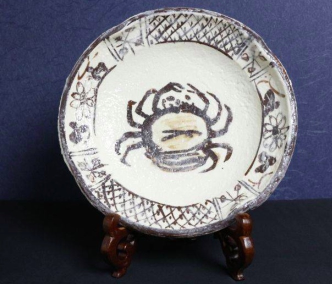 > 本物保証 北大路魯山人 浜邊涼風 志野足付蟹文鉢 東大寺 清水公照書付箱 共箱 共布 本物返品OK 240629−2