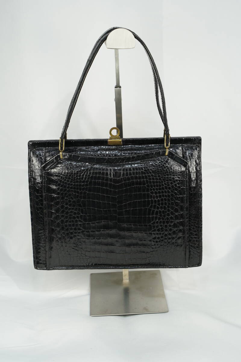 - W 西ドイツ製 金縁ポケット ハンドバッグ crocodile
