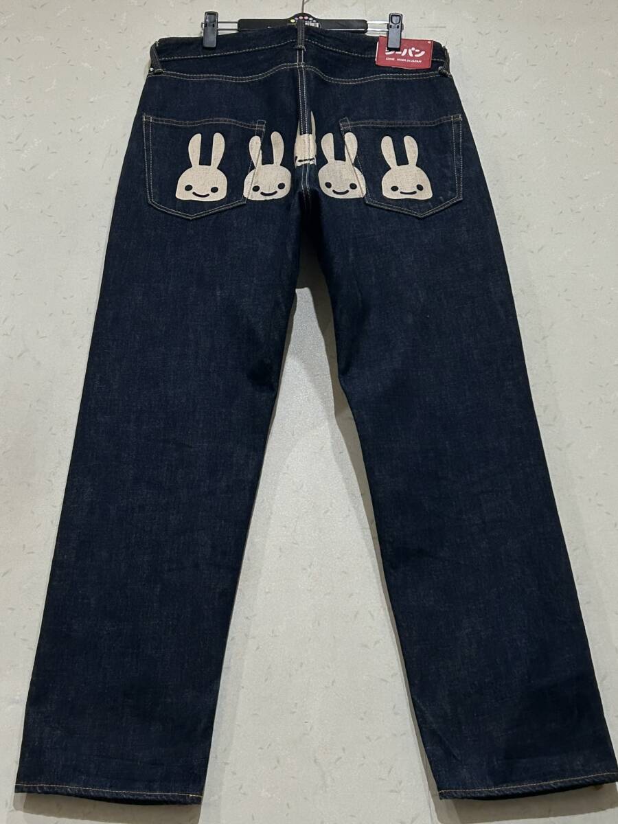 - ※CUNE キューン 5連うさぎペイント デニムパンツ マンモス 濃紺 大きいサイズ 34 BJBD.E
