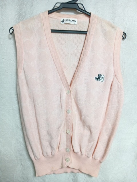 - 昭和レトロ BIACK&white ベビーピンク系ベスト 綿100 USED品