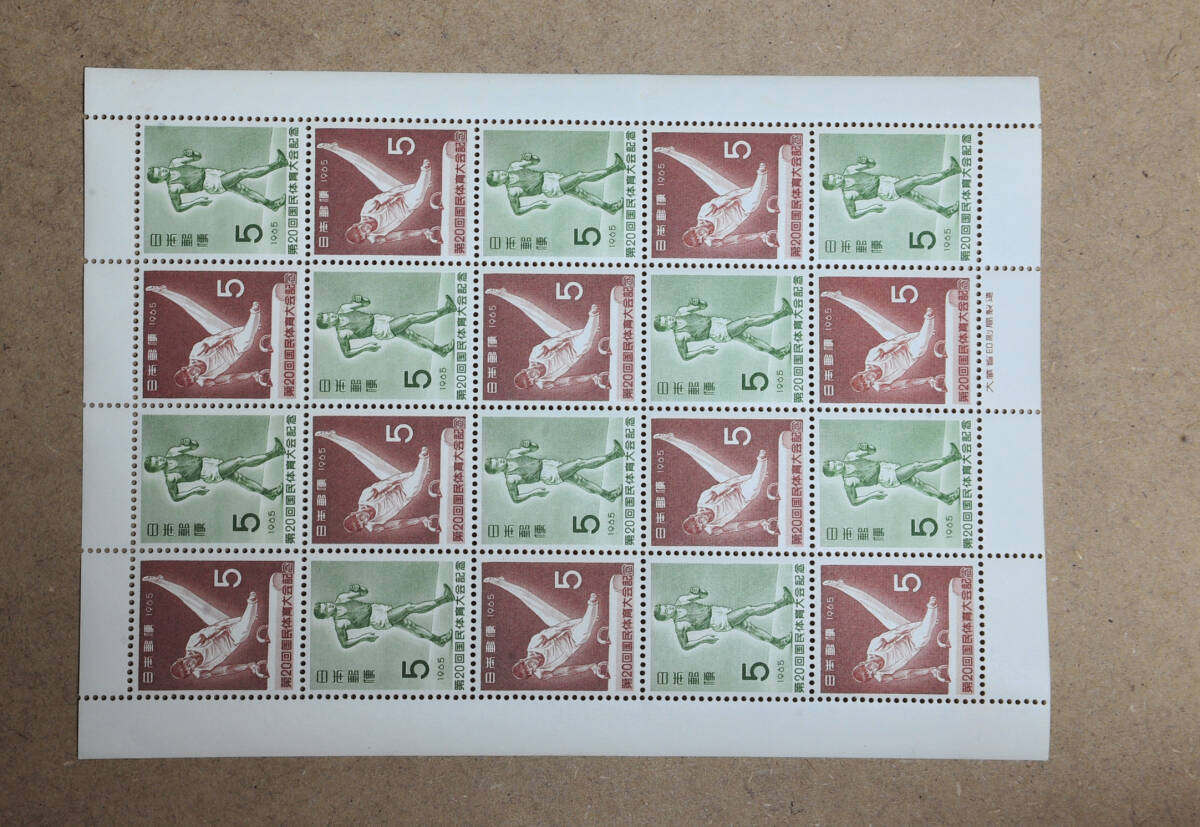 - 第20回国民体育大会記念・5円×20面シート・1965年発行