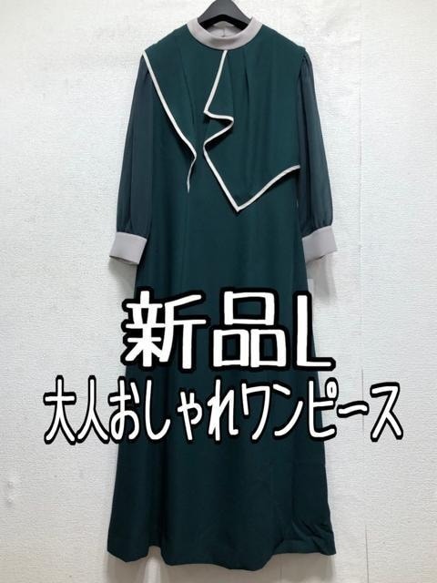 - 新品☆Lグリーン系おしゃれデザインパーティワンピース17490円を☆a695