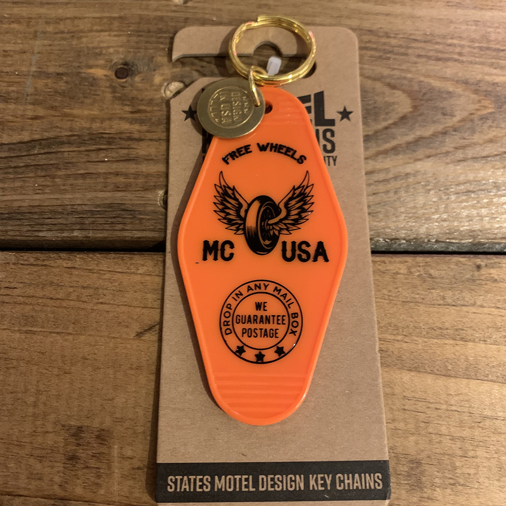 - 送料込み★ビンテージスタイル★MOTELキーホルダー「MC/USA」オレンジ/ブラスリング+チャーム付き HOTROD アメ車 ハーレー バイカー