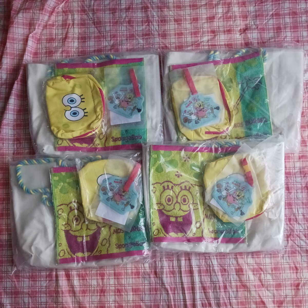 - モスバーガー 春のラッキーバッグ2024 4点 4セット スポンジボブ グッズ ロープトートバッグ パスケース ハンドタオル スクエアポーチ