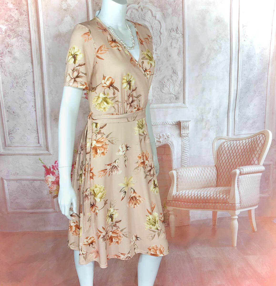 - 新品 Dorothy perkins オレンジベージュクラシックワンピース インナー付 S