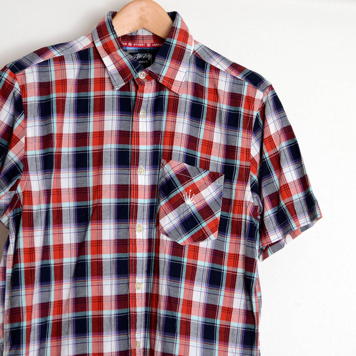 - AA506 ステューシー STUSSY 半袖シャツ M 肩44 格子柄 メール便可 xq