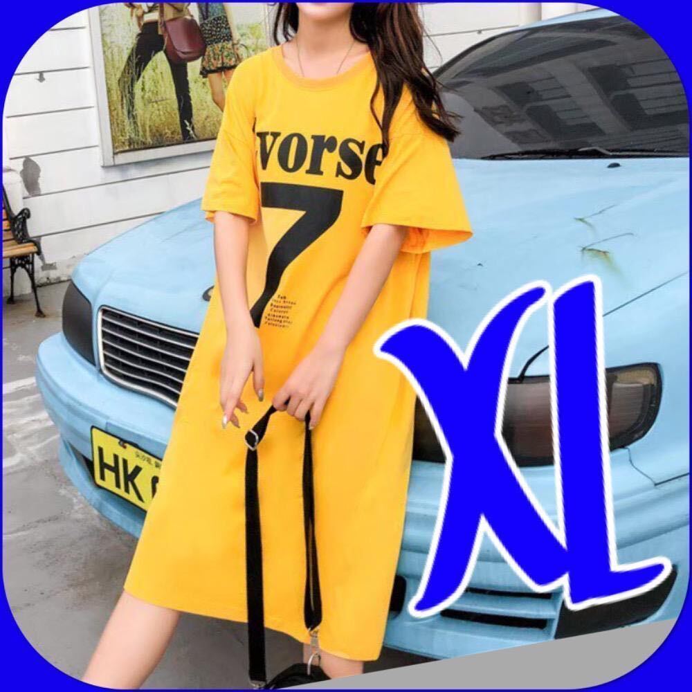 - チュニック ビッグシルエット シャツワンピース トップス 半袖 黄 XL