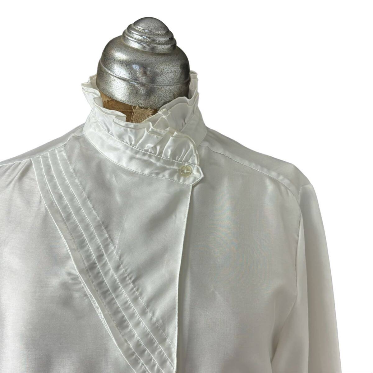 - ヴィンテージ【変形フリル】ドレスシャツ 長袖シャツ 日本製 80s 90s ブラウス レトロ 70s ホワイト モード 英国 アンティーク プリーツ
